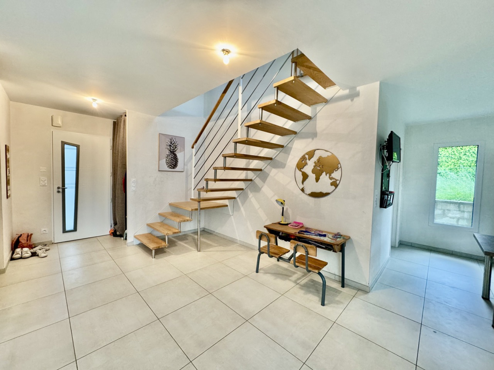 La maison est équipée d'une pompe à chaleur combinée à un chauffage au sol, assurant une efficacité énergétique optimale.