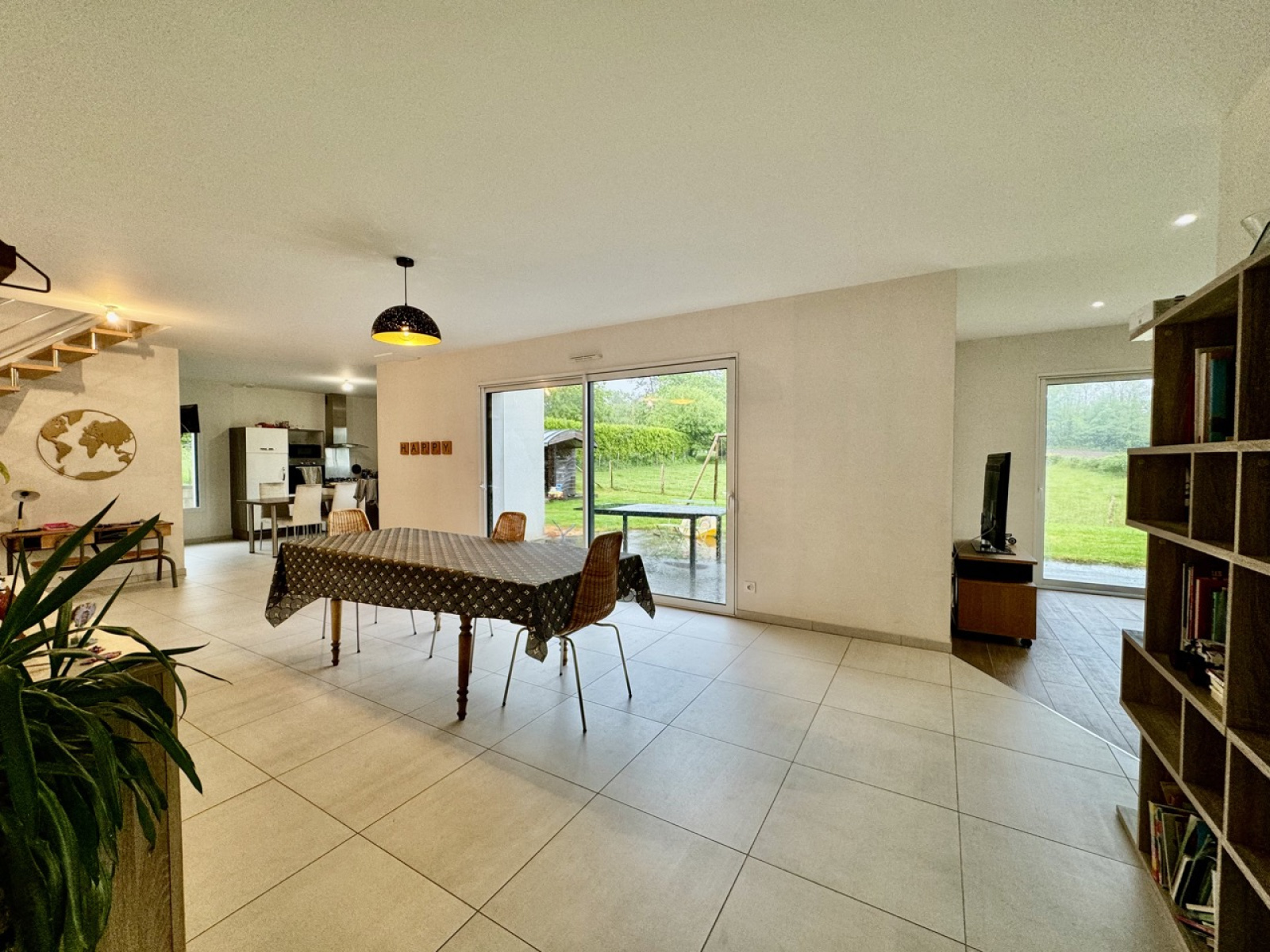 Concernant son architecture, au rez-de-chaussée : Entrée, spacieuse salle à manger, cuisine ouverte et équipée, buanderie, coin télé, bureau, suite parentale avec dressing et salle d'eau, WC séparé.