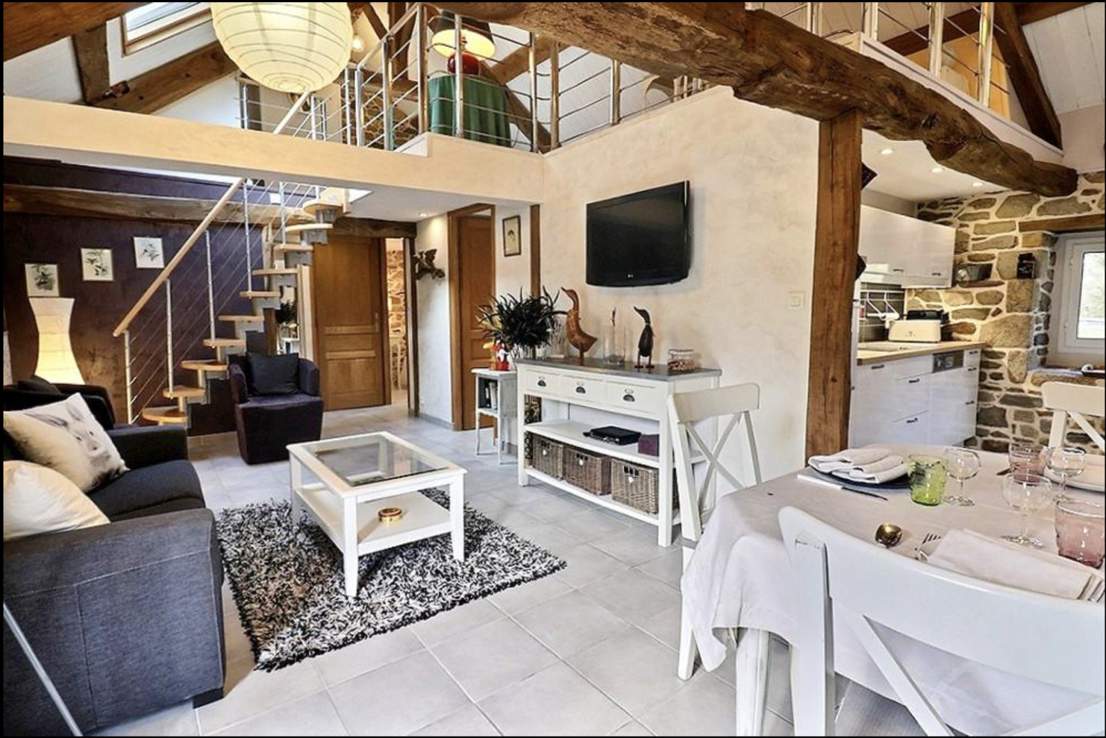 Un gîte indépendant (ancien moulin réaménagé de 70 m² – DPE C) : lumineux, chaleureux, avec salon/séjour, cuisine équipée, 2 chambres, salle d’eau et WC. Parfait pour accueillir vos proches ou générer un revenu locatif.