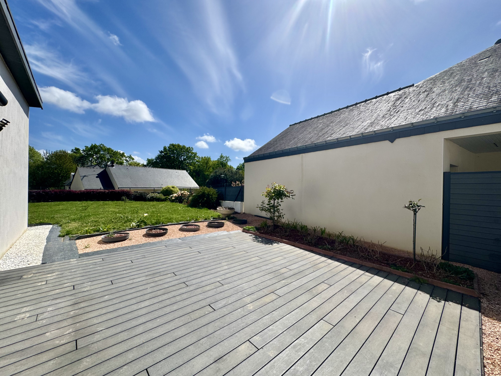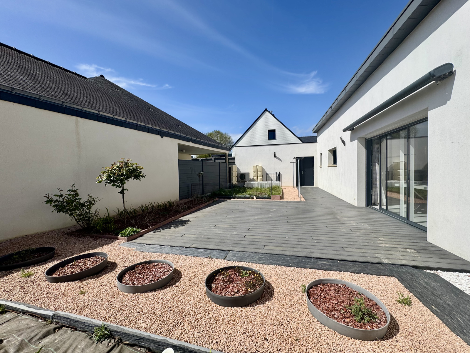 À l’extérieur, vous profiterez d’un jardin clos et d’une terrasse équipée d’un store banne, idéale pour les beaux jours.