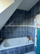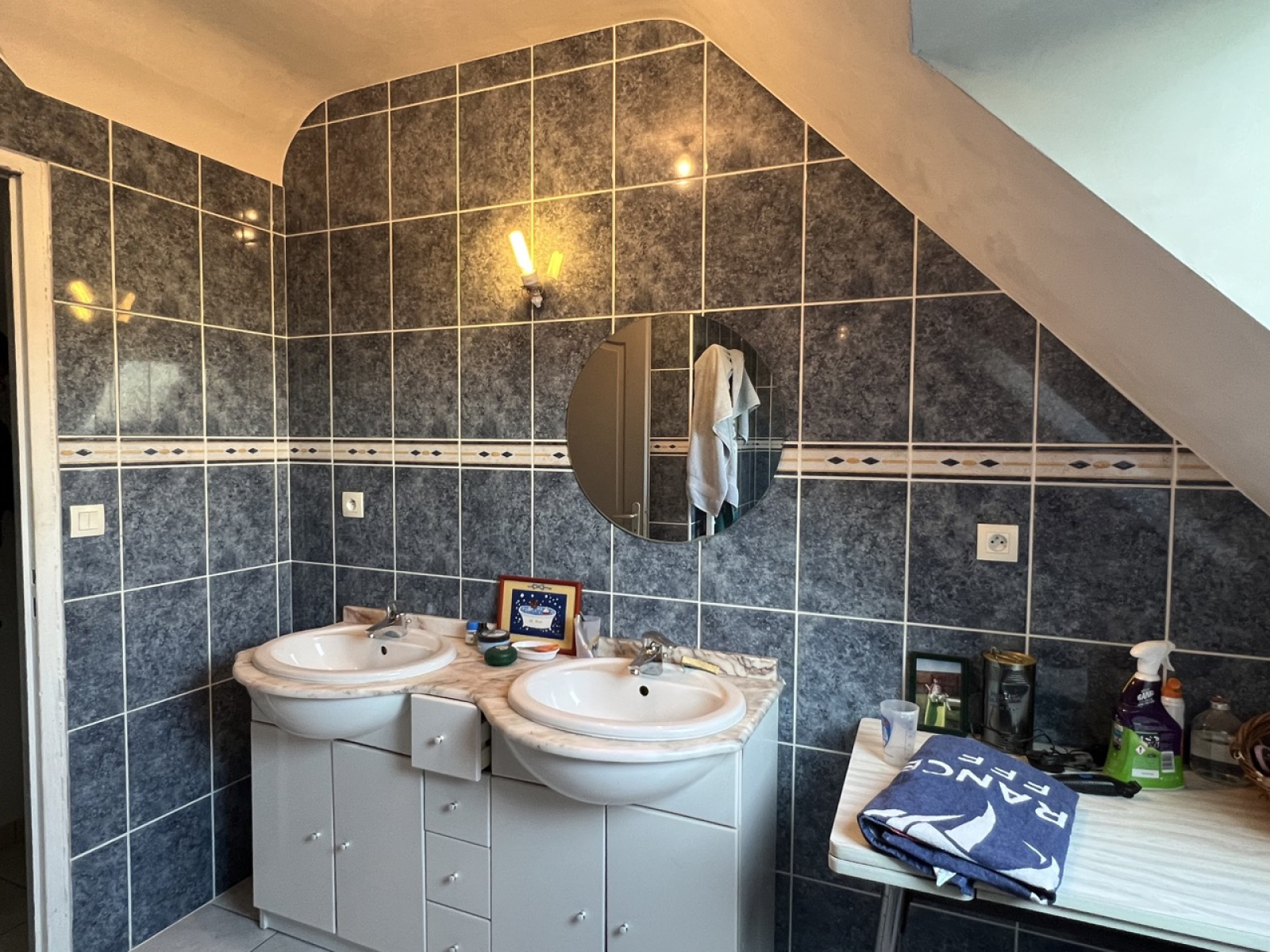 L'étage se décompose de la sorte : 3 chambres dont une donnant sur un balcon, une salle de bains avec WC séparé ainsi qu'un bel espace sous comble au dessus du garage pouvant être aménagé.