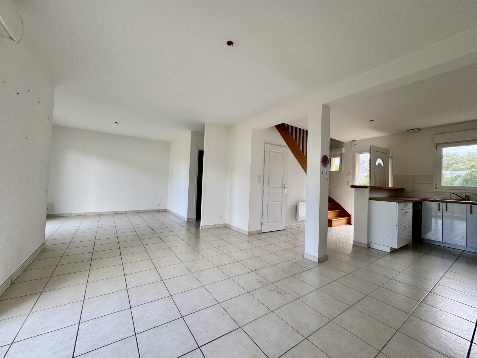 Elle dispose d'environ 84m2 avec au rez-de-chaussée : 1 chambre et sa salle d'eau, un salon/séjour, une cuisine ouverte ainsi qu'un WC. À l'étage, 3 chambres, une salle de bains ainsi qu'un WC. En complément, un garage de 24m2.