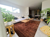 Concernant l'architecture : l'entrée avec placards donne sur une très grande pièce de vie de 60m2. Cet espace cocooning s'articule en trois axes, un salon/séjour, une cuisine équipée/aménagée et un espace télé. La maison dispose de trois belles chambres, d'une salle d'eau avec douche à l'italienne et d'un WC suspendu sépraré.