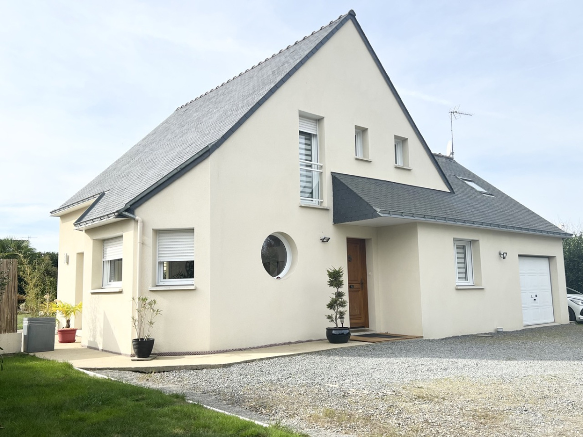 À quelques pas du centre bourg de Marzan, construction de 2023 disposant de 117m2 habitables sur 600m2 de terrain avec Frais de Notaire Réduits (2%).