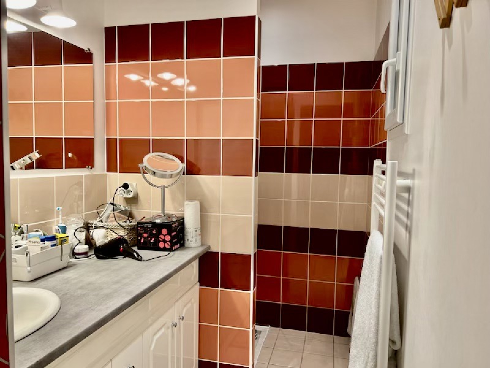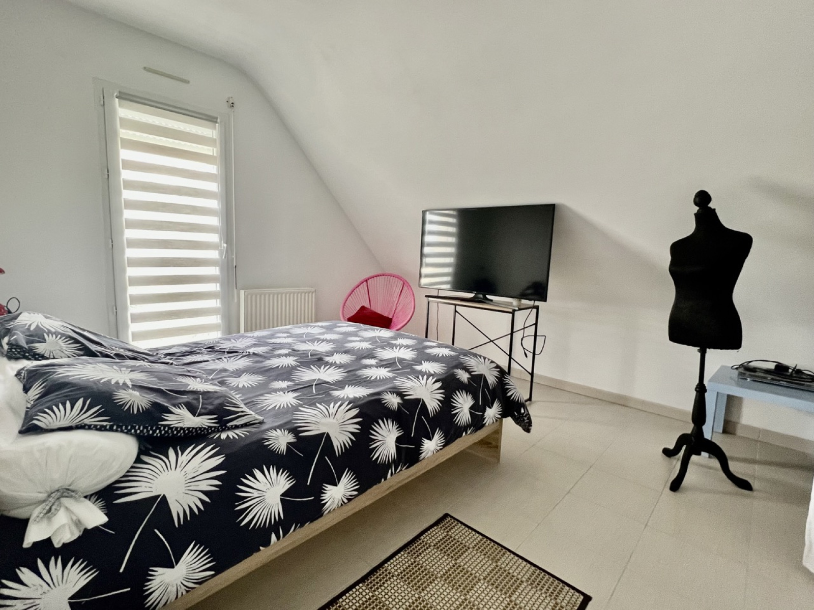 Au rez-de-chaussée : Entrée, salon/séjour, cuisine ouverte aménagée et équipée, buanderie, chambre et salle d'eau privative avec un WC séparé.