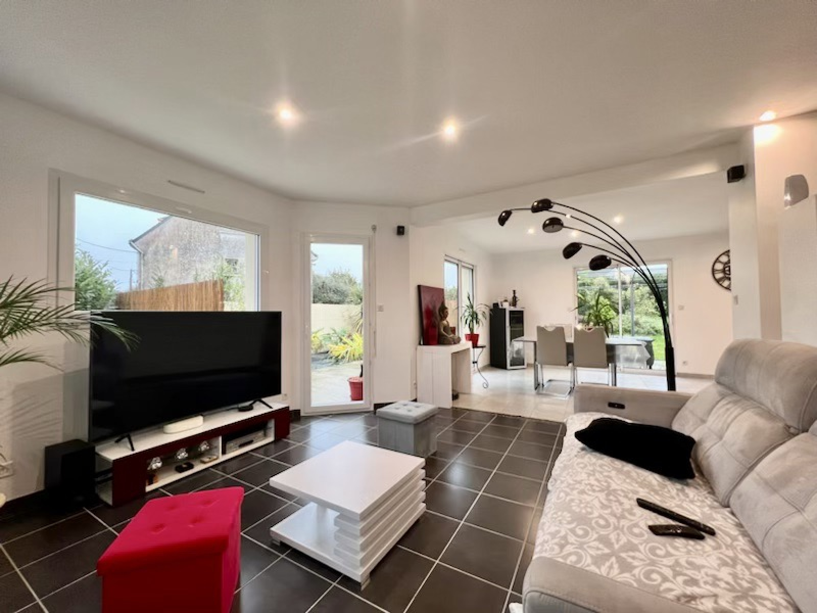 Concernant l'architecture de la maison. Très belle construction de 2009 qui est édifiée sur une parcelle de terrain entièrement close, avec portail électrique, d'environ 1345m2.
