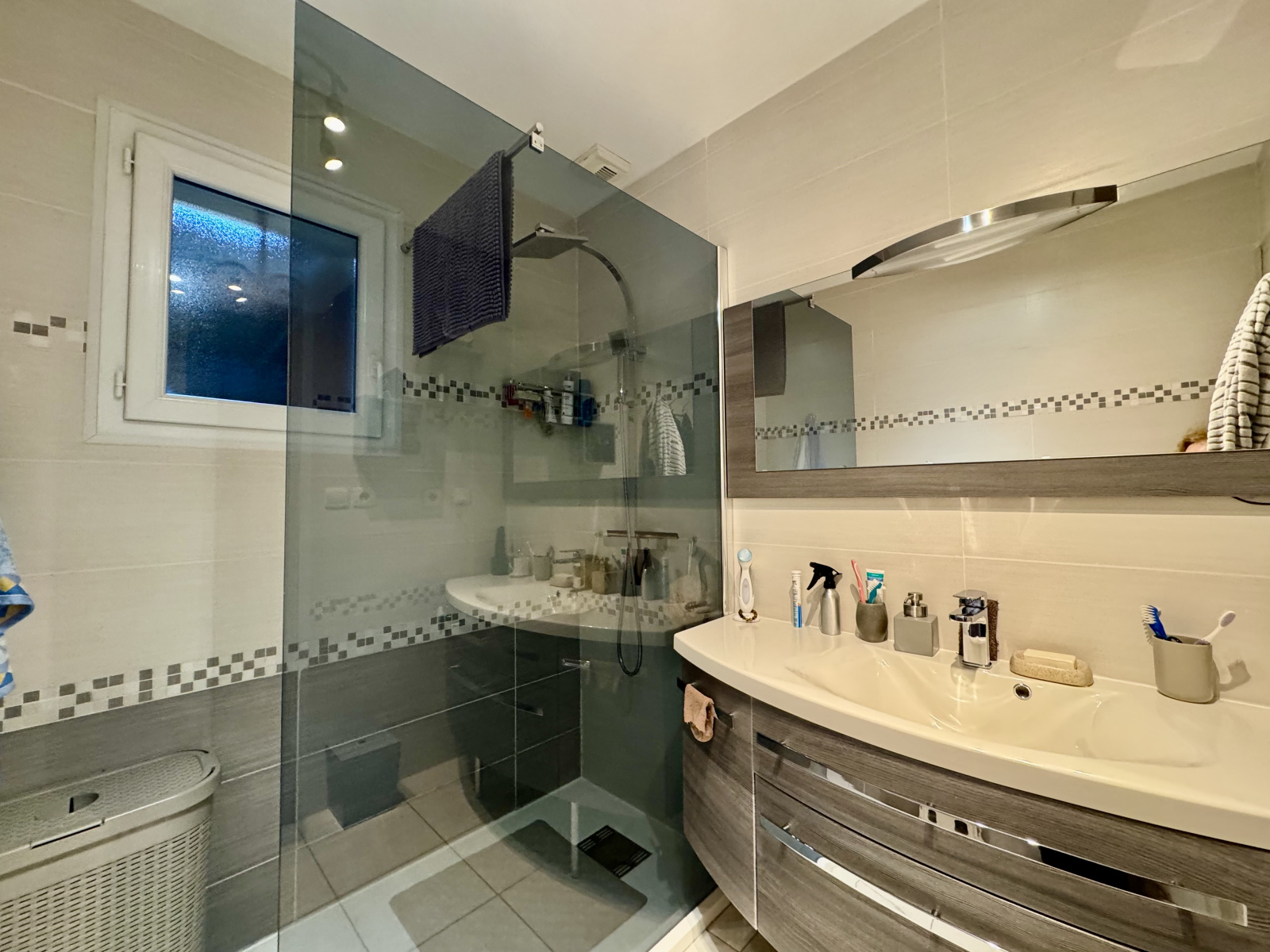 L’espace nuit se compose de trois chambres, d’une salle d’eau, d’un WC indépendant et d’un cellier, idéal pour le rangement et l’organisation du quotidien.