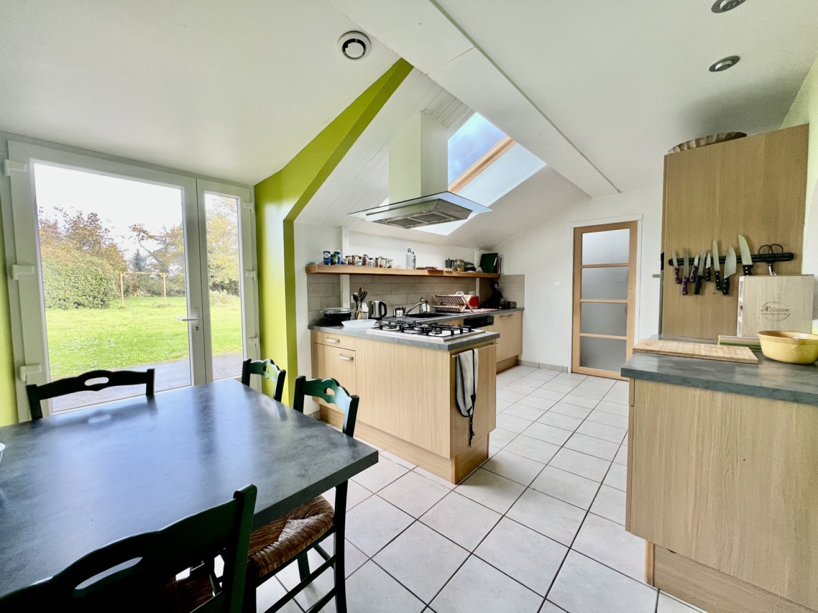 Concernant l'architecture de cette jolie longère. Elle dispose de 130m2 avec une vie de plain-pied. Au rez-de-chaussée : Un salon séjour lumineux avec cheminée et insert, une grande cuisine équipée, une chambre, une salle de douche ainsi qu'un WC séparé.