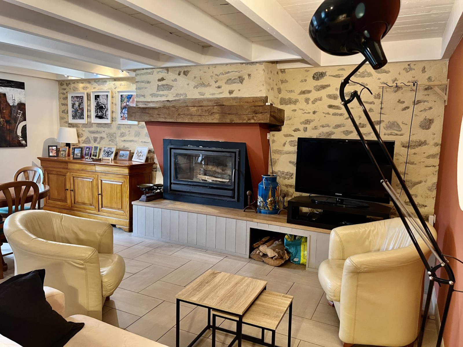 La maison est chauffée par la cheminée ainsi que des radiateurs électriques. Concernant l'assainissement, il est autonome.